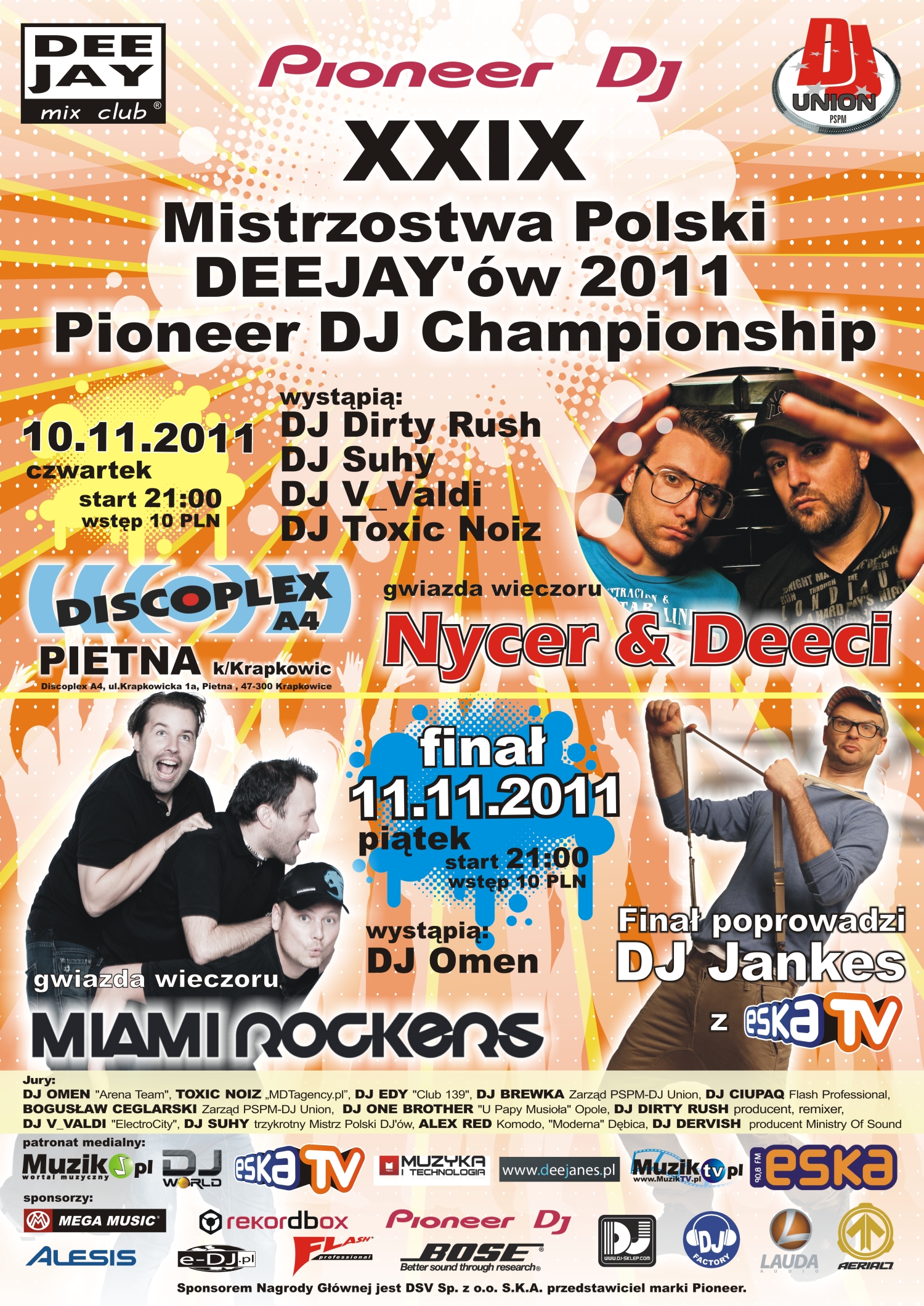 Zarząd DJ-Union jako Stowarzyszenie ponad podziałami powołał kolegów, którzy bez względu na przynależność klubową ( DJP, DMC) stanowić będą bezstronne Jury XXIX Mistrzostw Polski DJ’ów 2011 Pioneer DJ Championship: