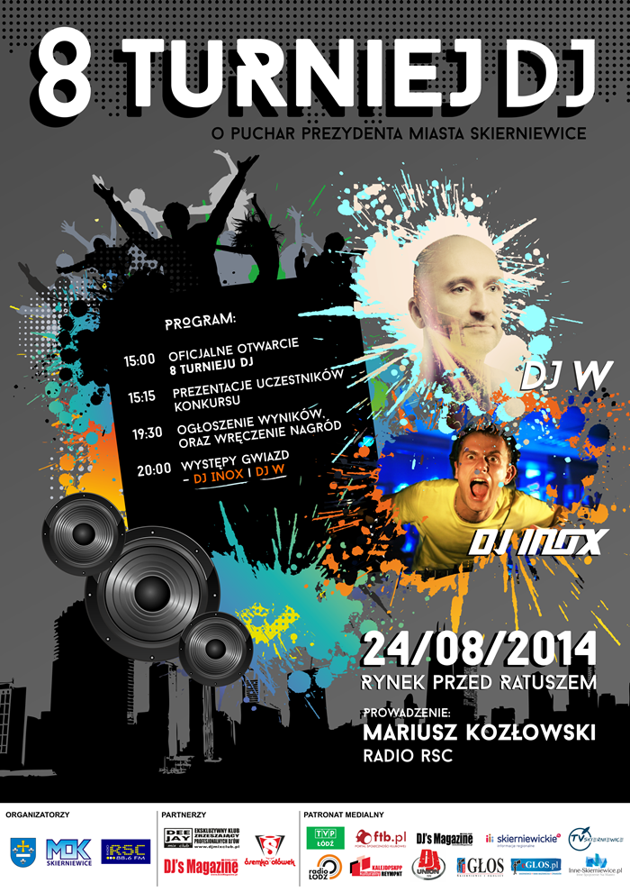 Miejski Ośrodek Kultury w Skierniewicach zaprasza DJ-ów do udziału w ósmej edycji Turnieju DJ 2014 o puchar Prezydenta Miasta Skierniewice. Konkurs odbędzie się 24 sierpnia na rynku przed ratuszem.