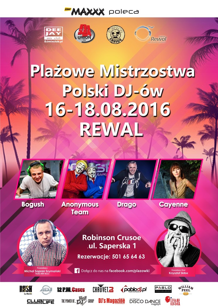 DJ Union zaprasza na „XXI Plażowe Mistrzostwa Polski DJ-ów”, które odbędą się w Rewalu w klubie Robinson Crusoe w dniach 16-18.08.2016.