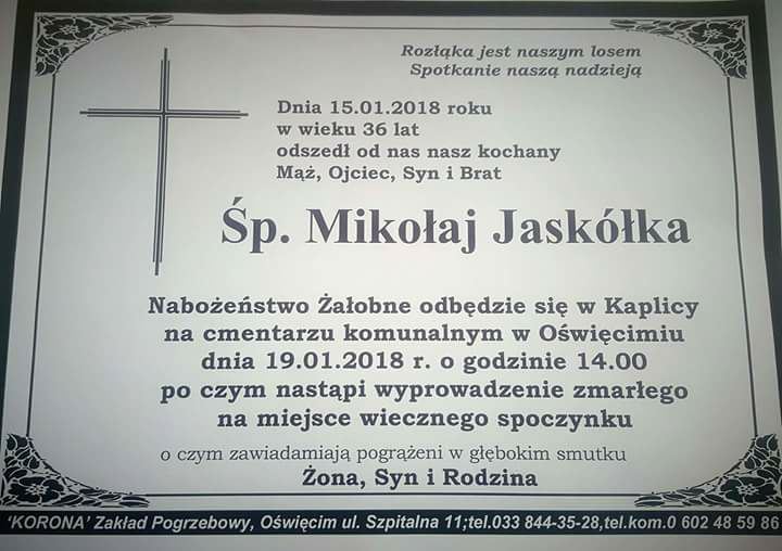 Chętnych, którzy chcą się pożegnać z kolegą informujemy o pogrzebie: