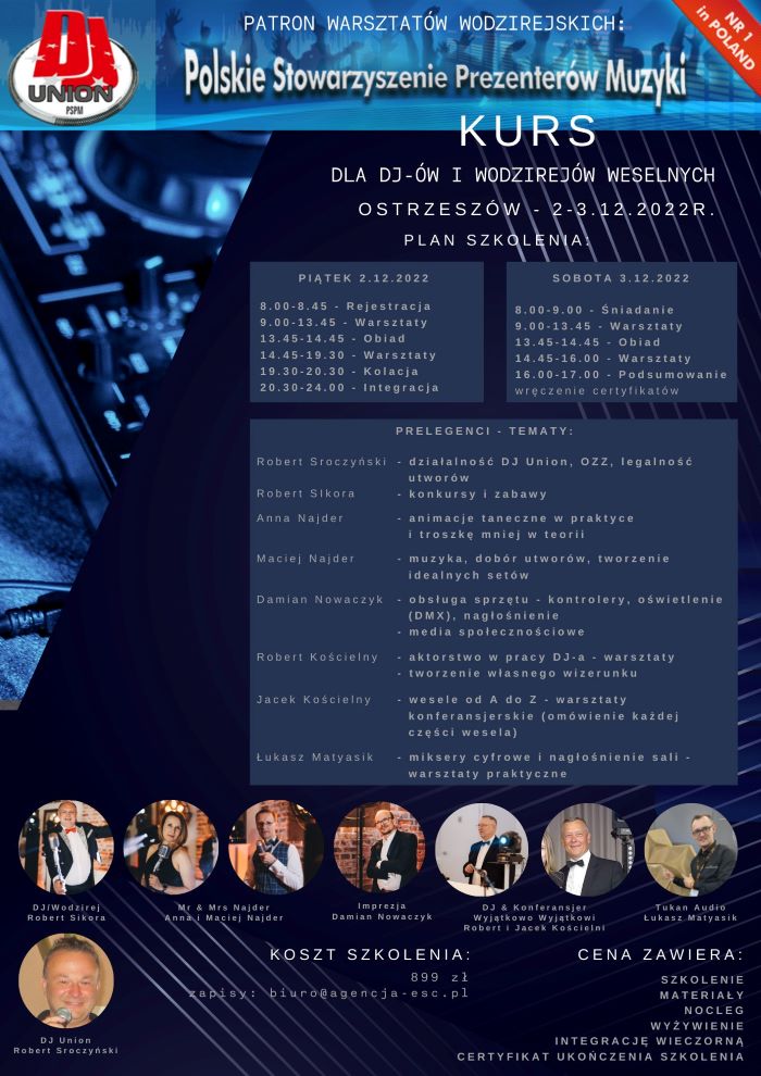 Miło nam poinformować, że kolejny Kurs został objęty Patronatem przez nasze Stowarzyszenie. Poniżej tekst Organizatora: Jesteś Dj-em lub wodzirejem weselnym